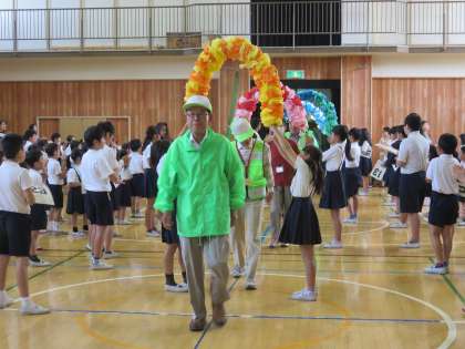 今日は土曜授業です。1時間目はいつも子ども達の登下校を見守っていただいている方をお招きして『見守り隊さんありがとう集会』を開きました。