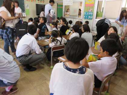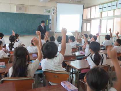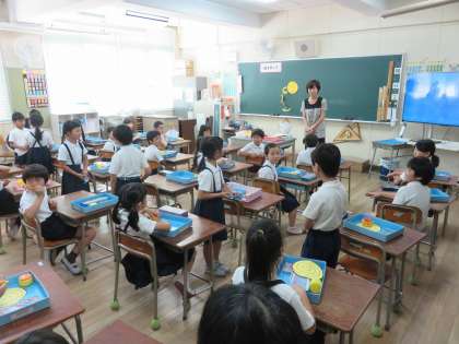 2時間目は土曜参観でした。1年生から6年生までかけ足で見て回ったので、参観の様子を各学年1枚ずつ紹介します。まずは低学年1・2・3年生の様子です。