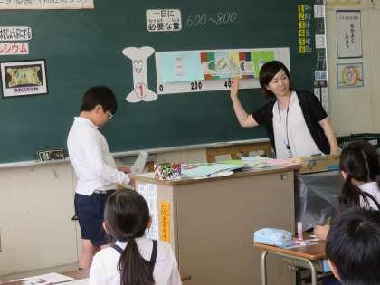 今日は栄養教諭さんに来ていただき、4年生の子ども達に食育の授業をしていただきました。今日のテーマは『カルシウム』