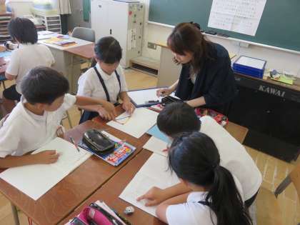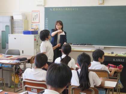 今日の6時間目、5年1組のクラスで研究授業を行いました。
