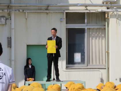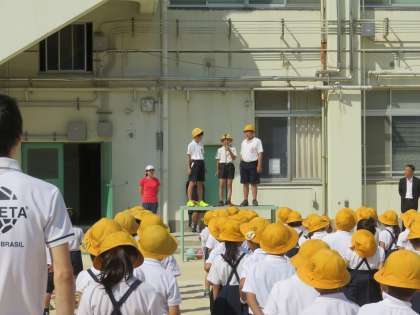 全校朝会で「予習、復習、学校の宿題をするのはもちろん読書や習い事の勉強も含めて、一日【10分×学年】の時間、机に向かって勉強しましょう!」と呼びかけました。