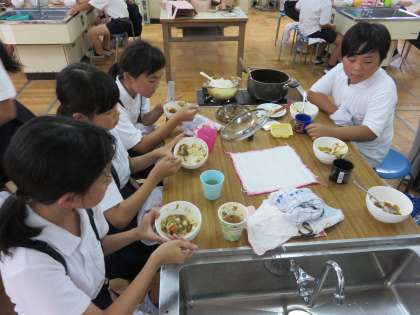 急きょ、お米をお鍋に入れて各班で炊くことにしました。それを見ていた子どもの一人が、「これが林間かぁ・・何が起こるか分からんなぁ・・」と分かったようなことをつぶやいたので、思わず「そやなぁ・・それが林間やぁ・・」と私も答えてしまいました。