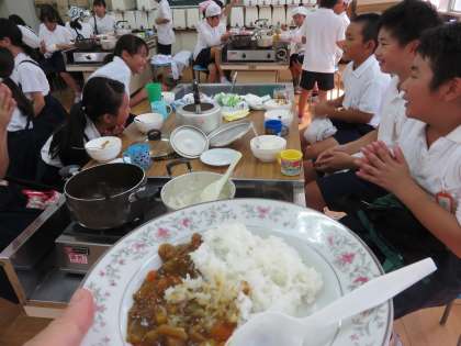 (続き・・)そろそろカレーが出来上がるという時に、ちょっとしたハプニングが・・・何と、できているはずのご飯が炊飯器の故障で炊けてなかったのです!!