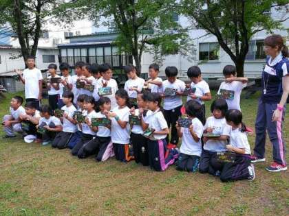 最後にできた焼き板を持って、クラスごとに記念写真を撮りました。