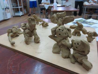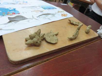 ネンディという粘土でできた人形は筆箱の中に住んでいて、ある日消しゴムと鉛筆と一緒に冒険に出発します。さあどこに冒険に出かけるのでしょうか・・なかよし学級の2年生の子ども達がいろいろイメージをふくらませ、それを土粘土で作り上げていきます。