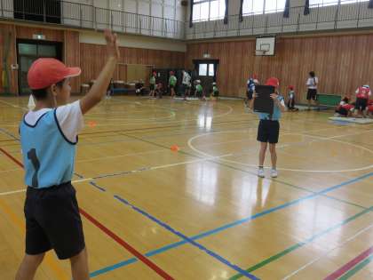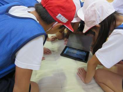 タブレットを使った体育の授業(4年) 10月6日(金)