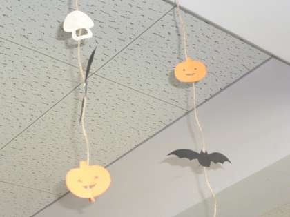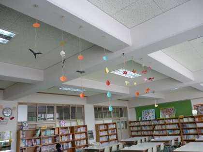 コロボックルのみなさんや学校図書館の支援員さんが手作りの飾りを作ってくださいました。