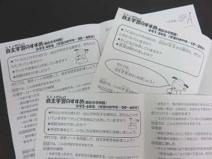 また、『自主学習のすすめ』(新庄小版)を低・中・高3種類作成して、全校児童に配りました。