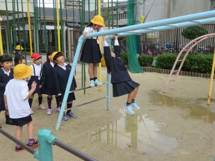 水たまりに足が入ってしまい、靴下がぬれた子もいたかな?!