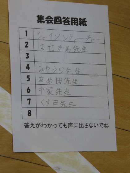 こういう時はけっこう先生方は凝るもので、声を変えたりして吹き込んでいるので、子ども達にとってはかなり難しかったと思います。
