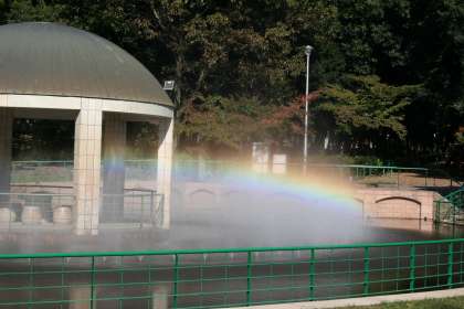 キリのような噴水が出ると虹が見えました。ポイントをすぐ見つけて順調に進んでいる班もあれば、ちょっと迷ってみんなで地図を見ながらポイントの場所を探しているところもありました。