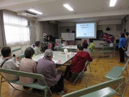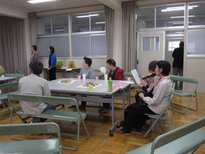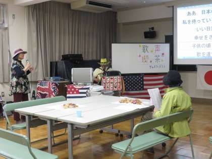 昔流行った懐かしい曲をアコーディオンの音色に合わせて、みんな一緒になって歌っていました。