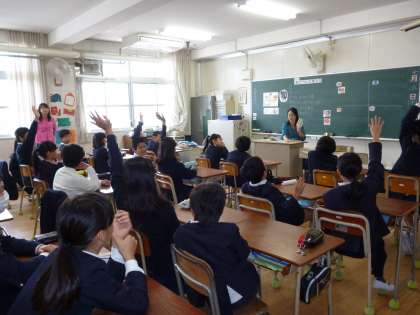 旬の良さについてみんなで話し合ったあと、様々な食材について旬の季節を考えました。