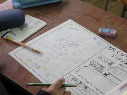 4年生が、図工の時間に“びっくりかんづめ”のいろいろなアイデアを考えて、スケッチしていました。