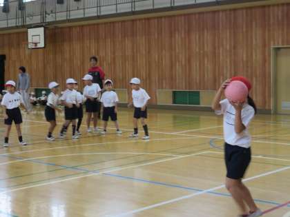 そして後半はドッジボールをしました。どこにボールを投げたら相手チームのボールになってしまうのか、外野と内野でそれぞれ考えながらゲームをしていました。