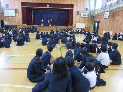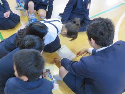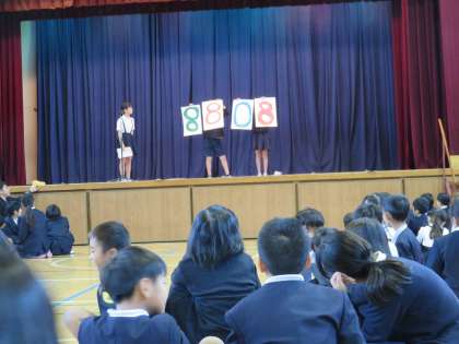 昔ポケベルが流行ったころ(今のお母さんは知らないか…?!)こんなことをよくやっていたなぁ・・と懐かしかったですが、今日の児童集会は、数字を解読して答えるクイズでした。