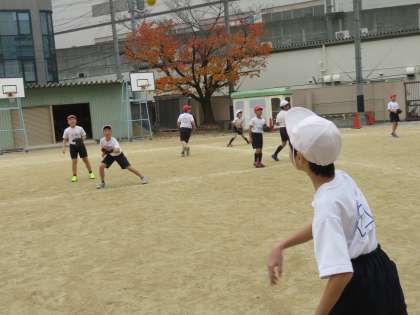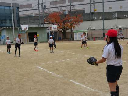 今日は4年生が合同でグローブを使ってキャッチボールをしていました。野球やソフトボールを習っている子とそうでない子でかなり差がありましたが、みんなで教え合いながらうまくキャッチできるように練習していました。