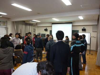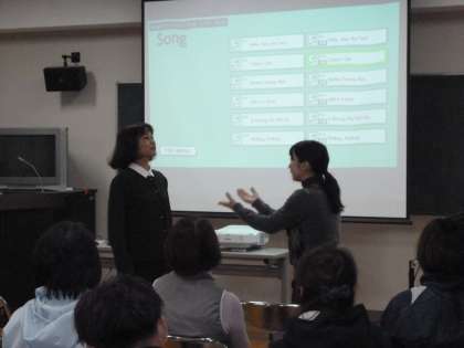 授業の中で子どもたちが歌っている歌や会話を先生方も実際に行い、大変活気のある、楽しい研修会となりました。