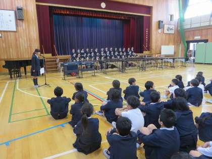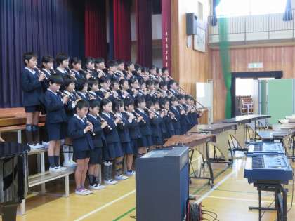 演奏はもちろんですが、4年生はみんなでがんばろうという意欲にあふれ、姿勢正しく大きな声で発表ができていたところが、とても素晴らしかったです。他の学年の子ども達も4年生の演奏に黙って静かに聞いていました。