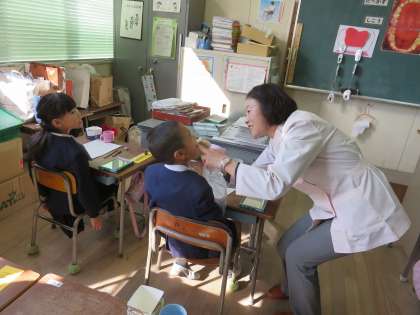 今日は校医の歯科の先生と歯科衛生士さんに来ていただき、2年生に歯の磨き方の指導をしていただきました。