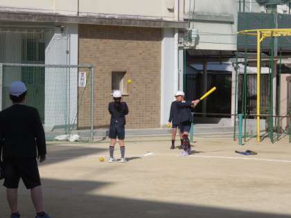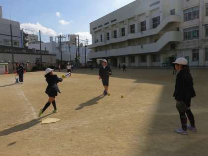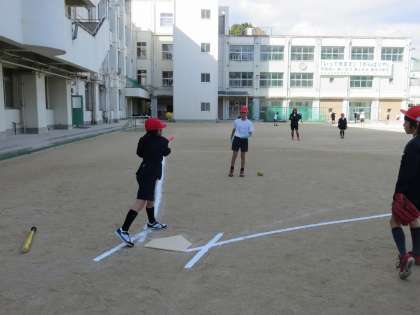 4年生が11月の末頃から練習していた『ティーボール』。今日はチームに分かれてゲームをしていました。