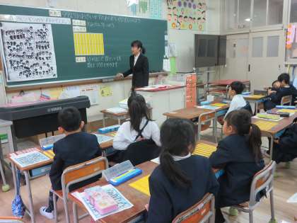 今日は校内研修の一環として、なかよし学級の担任の先生が1年生の教室に入って算数の授業をしました。