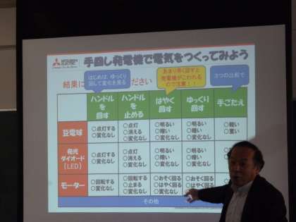 三菱電機から講師をお迎えし、「電気をつくる」というテーマで学習をしました。