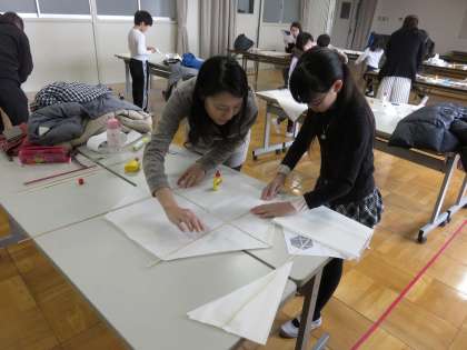 今日作った凧は、2月11日(日)の『東淀川区こども凧揚げ大会』で揚げる予定です。