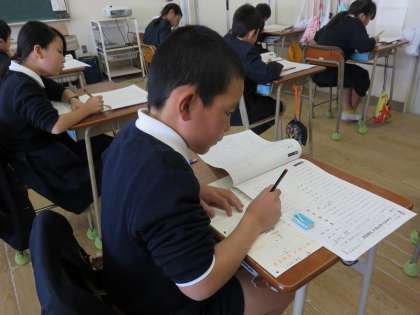 今日の5時間目、全校一斉に漢字検定(漢検)を実施しました。