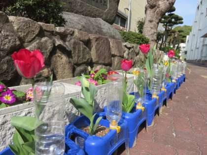 新2年生が育てているチューリップも今が見ごろを迎えました。