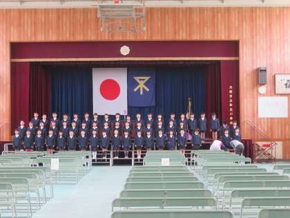 講堂では、6年生が入学式の準備を終えたあと、新2年生が明日のお迎えの演技の最後の練習を行いました。