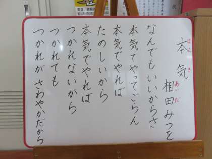 相田みつをさんの『本気』という詩を、今校長室の前に掲示しています。