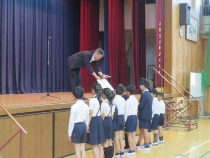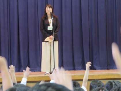 その後、教頭先生が“あいさつ”の大切さについて、子ども達に話をしていただきました。
