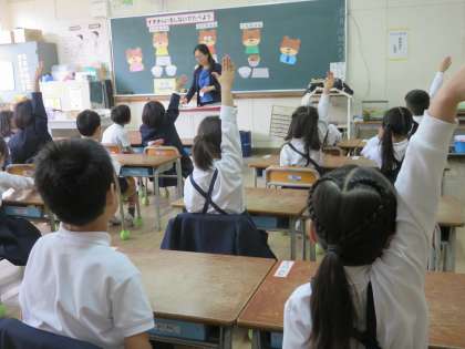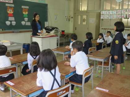 今日は栄養教諭の先生に来ていただき、1年生に食育の授業をしていただきました。