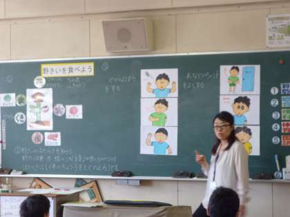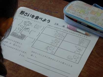 今日は栄養教諭の方が来てくださり、「野菜をたべよう」というテーマで学習しました。