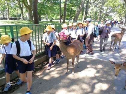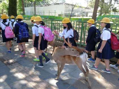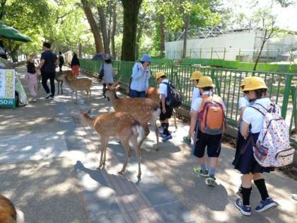 外国人旅行者とともに、鹿せんべい求めて、鹿がいっぱい!