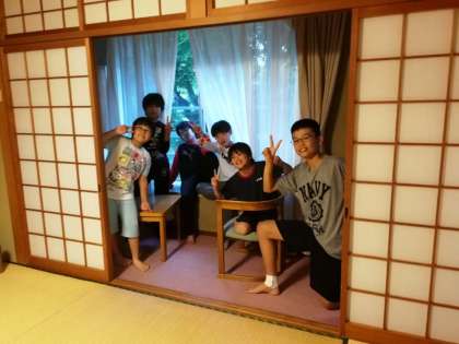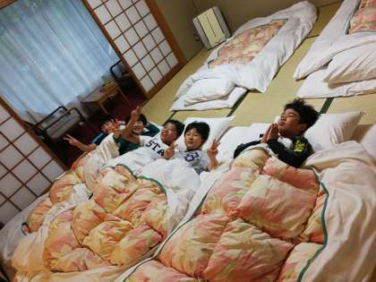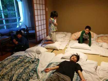 お風呂にも入り、格部屋で休憩中の子ども達。