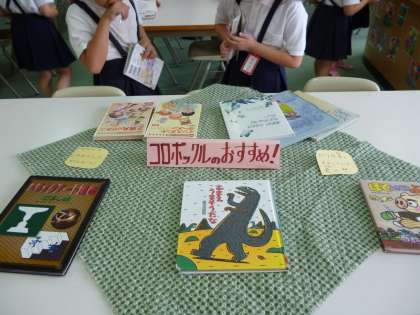 図書館には「コロボックルのおすすめ」と題してディスプレーもあり、興味深く子どもたちは見ていました。
