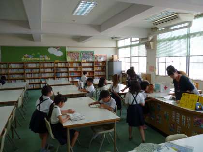 お天気がよく運動場で遊ぶ子どもたちが多くいましたが、図書館にもたくさん足を運んでいました。