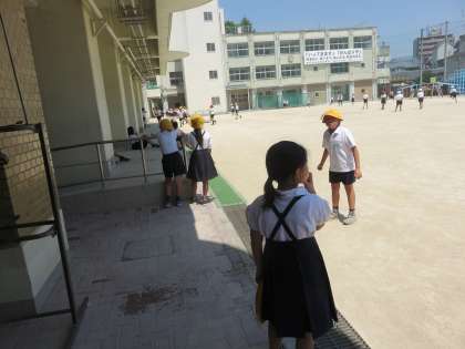 新庄小でも、2か所あるミスト(給食室前・一輪車置き場前)は全開にし、休み時間は早めに切り上げて、涼しいところで水分補給をするように指導をしています。