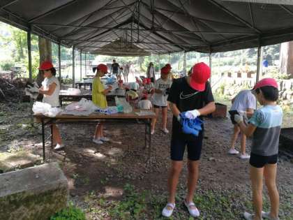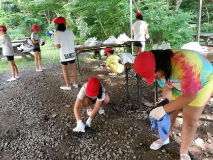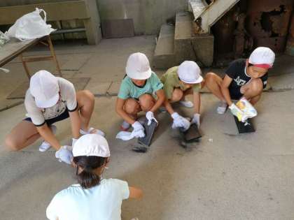 焼いた炭がつかなくなるまで、しっかり研きましょう。