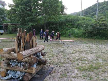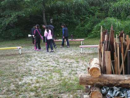 今、キャンプファイヤーの準備係が進行の最終打ち合わせをしています。