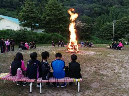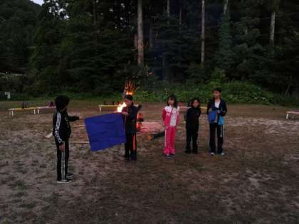 始めは明るかったのが、だんだんと周りが暗くなる中キャンプファイヤーを行いました。