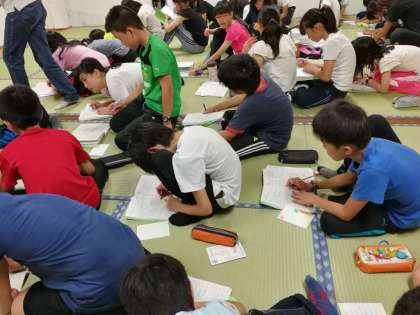 部屋に戻って布団を敷きました。そのあと大広間に集まって、一日の反省をしました。