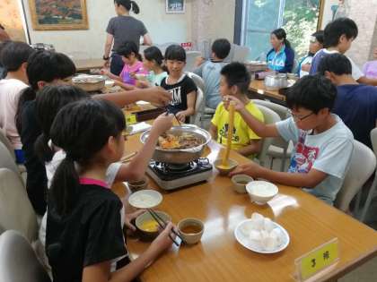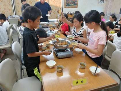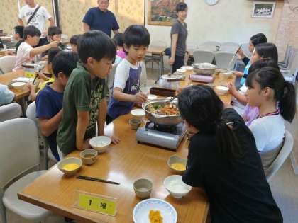 昼間少ししんどくなった子も、お風呂に入り、部屋で休憩して、今はみんなと一緒にご飯を食べています。