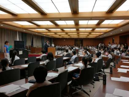 昨日、台風20号の影響で中止になっていた「子ども市会」の収録会が大阪市役所で行われました。