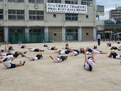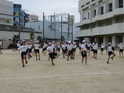 リズムに乗る曲で体を動かし、隊形移動をしていきます。途中にはグループごとに考えた踊りも取り入れるそうです。