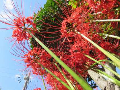 いつもこの時期になると咲く彼岸花。曼珠沙華(まんじゅしゃげ)とも呼ばれています。本当に、火花が飛び、燃えさかる炎のような花に見えました。