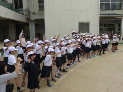 応援団はもちろんですが、児童席から応援している子ども達は、高学年から低学年までみんなが声を張り上げて応援していました。