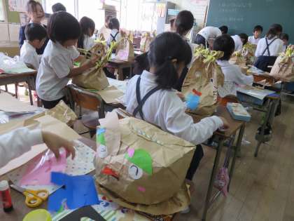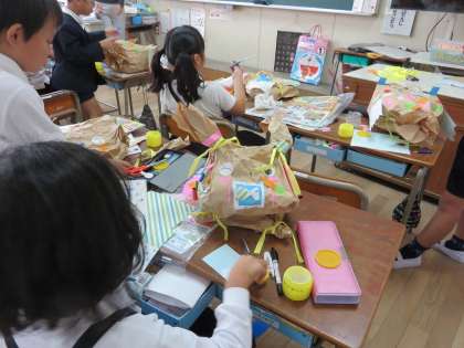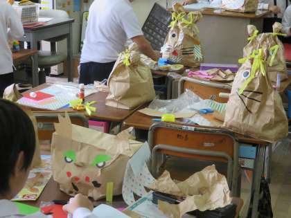 うさぎやたぬき、くまやフクロウのようないろいろな森の友だちがいっぱいできあがっていました。子ども達の発想がとても豊かで、かざりも工夫されていました。